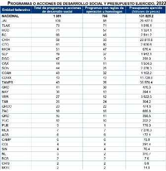 Durante 2022, administraciones públicas estatales operaron mil 051 programas o acciones de desarrollo social