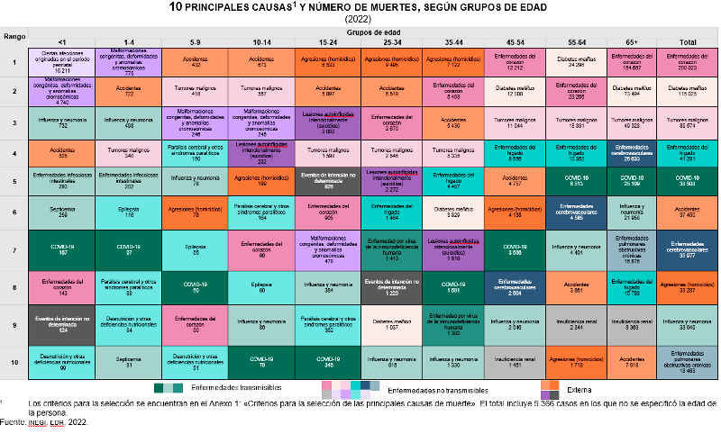 El Instituto Nacional de Estadística y Geografía (INEGI) da a conocer los resultados definitivos de las Estadísticas de Defunciones Registradas (EDR) correspondientes a 2022.