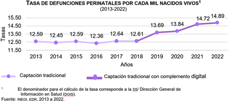 En 2022, ocurrieron 24 mil 172 muertes perinatales, las cuales se integran con las estadísticas de defunciones fetales en conjunto con las estadísticas de defunciones registradas y comprenden las defunciones ocurridas entre las 22 semanas de gestación y los primeros siete días después de que ocurre el nacimiento.
