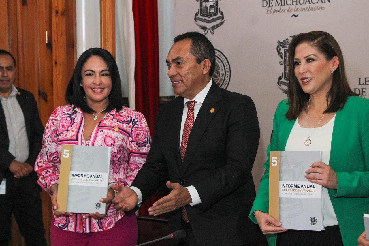 Lo anterior, al presentar ante diputados michoacanos, su Quinto Informe Anual de Labores, en su Plan de Persecución del Delito correspondiente al ejercicio 2023.
