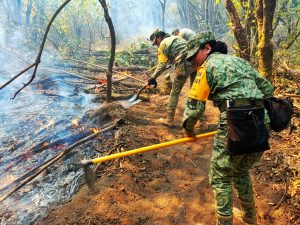 El personal militar realizó diversas labores de combate a incendios, empleando herramientas de mano para la elaboración de brechas contra fuego, con el fin de la sofocación de este incendio.
