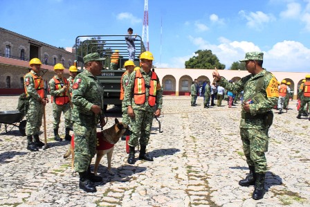 Para efectuar dicho simulacro, estuvo presente un efectivo de 144 elementos, conformados por tropas del Cuartel General, 12/o. Batallón de Infantería, y Guardia Nacional, donde en la explanada del Cuartel José María Morelos, pasaron revista al material, equipo y vehículos que se tienen destinados ante dicha emergencia.
