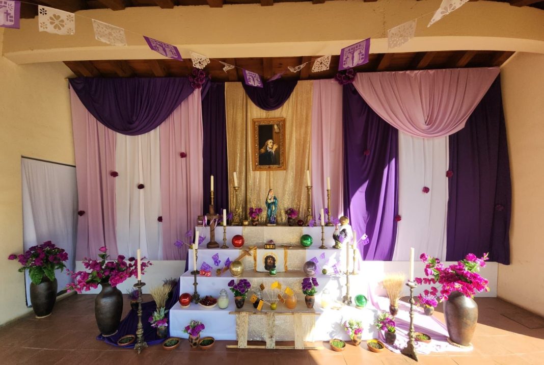 Entre las opciones que oferta el Civaq en esta Semana Mayor al turismo religioso, se encuentra el Altar de Dolores, el cual fue realizado por el personal del espacio, encabezado por su director Juan Bosco Castro García.