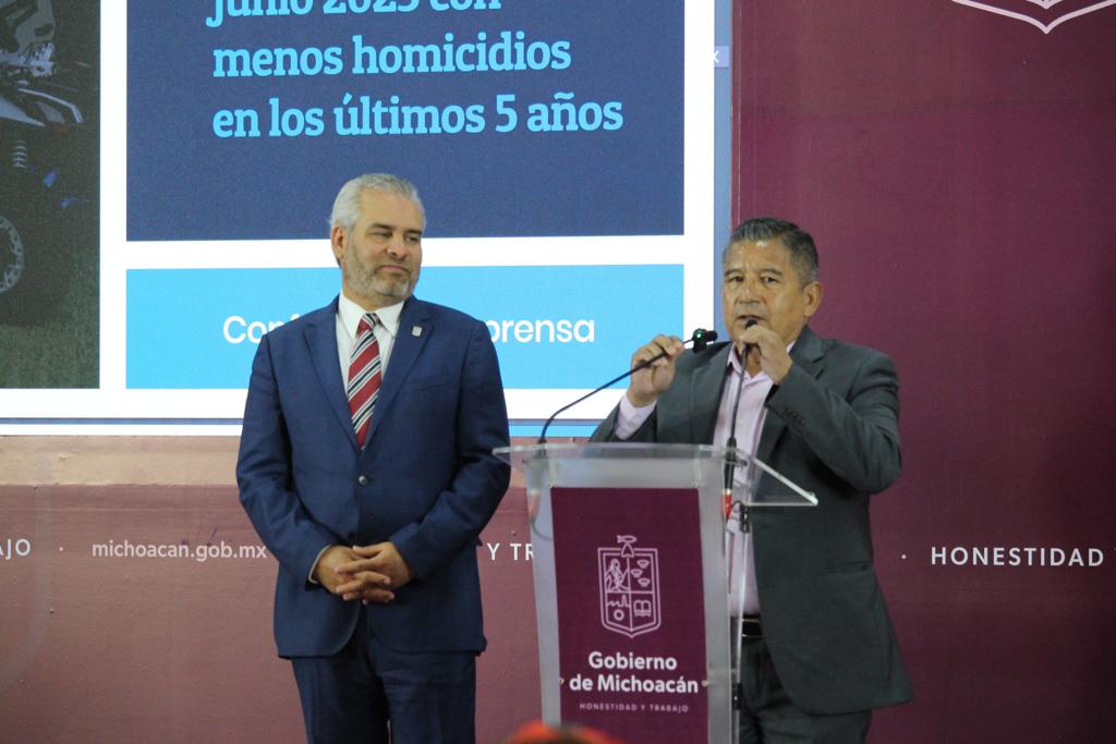 Durante la conferencia de prensa semanal acompañado del gobernador Alfredo Ramírez Bedolla, el secretario destacó la tendencia a la baja en otros delitos como el robo a negocios y casa habitación en un 25 por ciento y hasta en un 33 por ciento en robo al transporte.