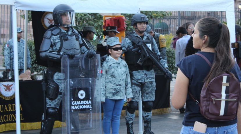 Atrayendo la atención de los que pasaban por el primer cuadro, los integrantes del 26 Batallón de Guardia Nacional en Tarímbaro, Fiscalía General de Justicia del Estado, Fiscalía General de la República, Guardia Civil y Policía Morelia, instalaron módulos informativos sobre algunas de las acciones que realizan.