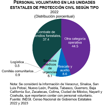 A nivel nacional, 4.8 % del personal de Protección Civil, distribuido en 11 entidades, se ocupaba en funciones de búsqueda y rescate de estructuras colapsadas. En 2022, el resto de las entidades no disponía de personal para estas funciones.