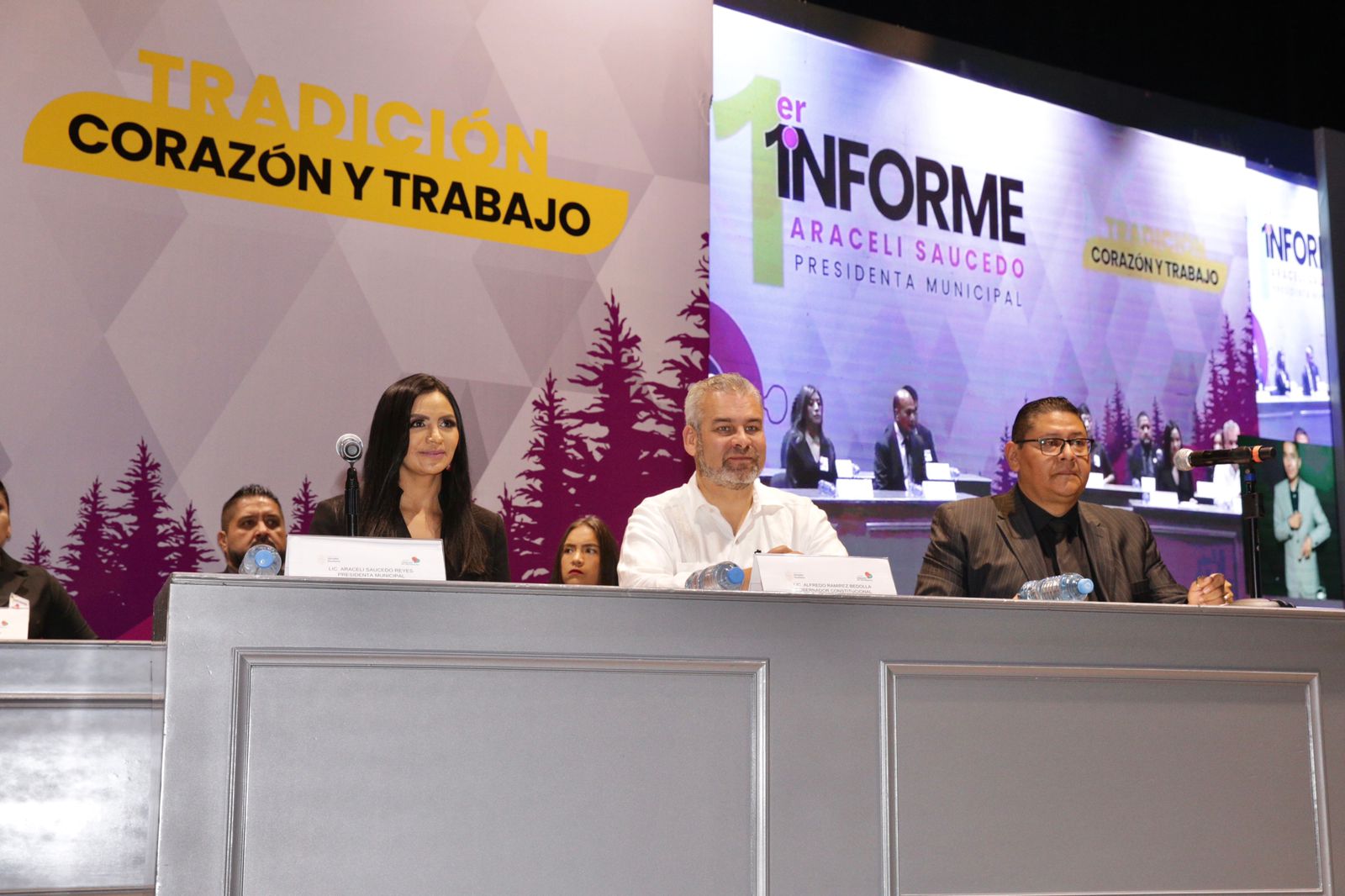 Asiste gobernador al Primer Informe de Gobierno de Araceli Saucedo