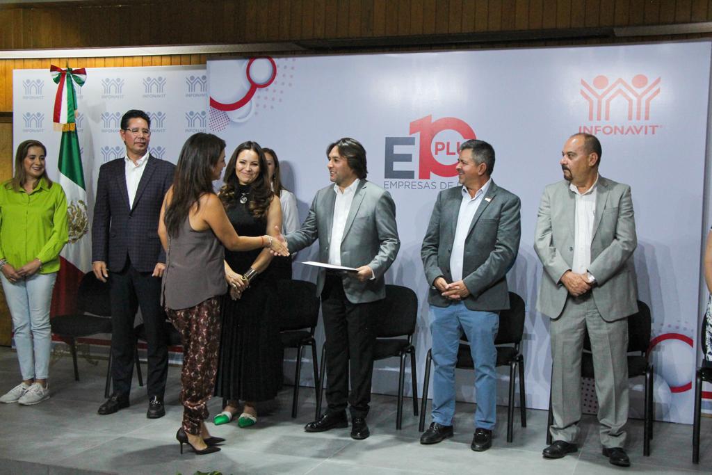 Lo anterior, durante la entrega de reconocimientos de “Diez Plus”, que otorga el INFONAVIT a las empresas que muestran compromiso con sus trabajadores al crear empleos de calidad, favorecer el desarrollo económico de su localidad y por el excelente cumplimiento de sus obligaciones patronales, ante la institución federal.