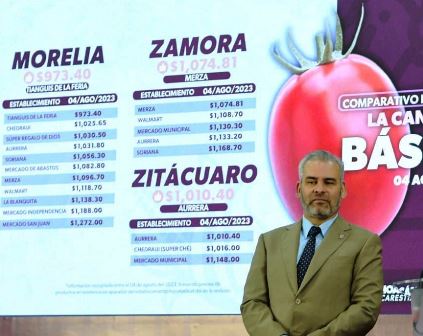 En rueda de prensa encabezada por el gobernador del estado, Alfredo Ramírez Bedolla, el funcionario estatal puntualizó que en la capital michoacana el monto más alto que se registró fue de mil 272 pesos, que equivale a una diferencia de casi 300 pesos entre uno y otro para adquirir los mismos 25 productos.