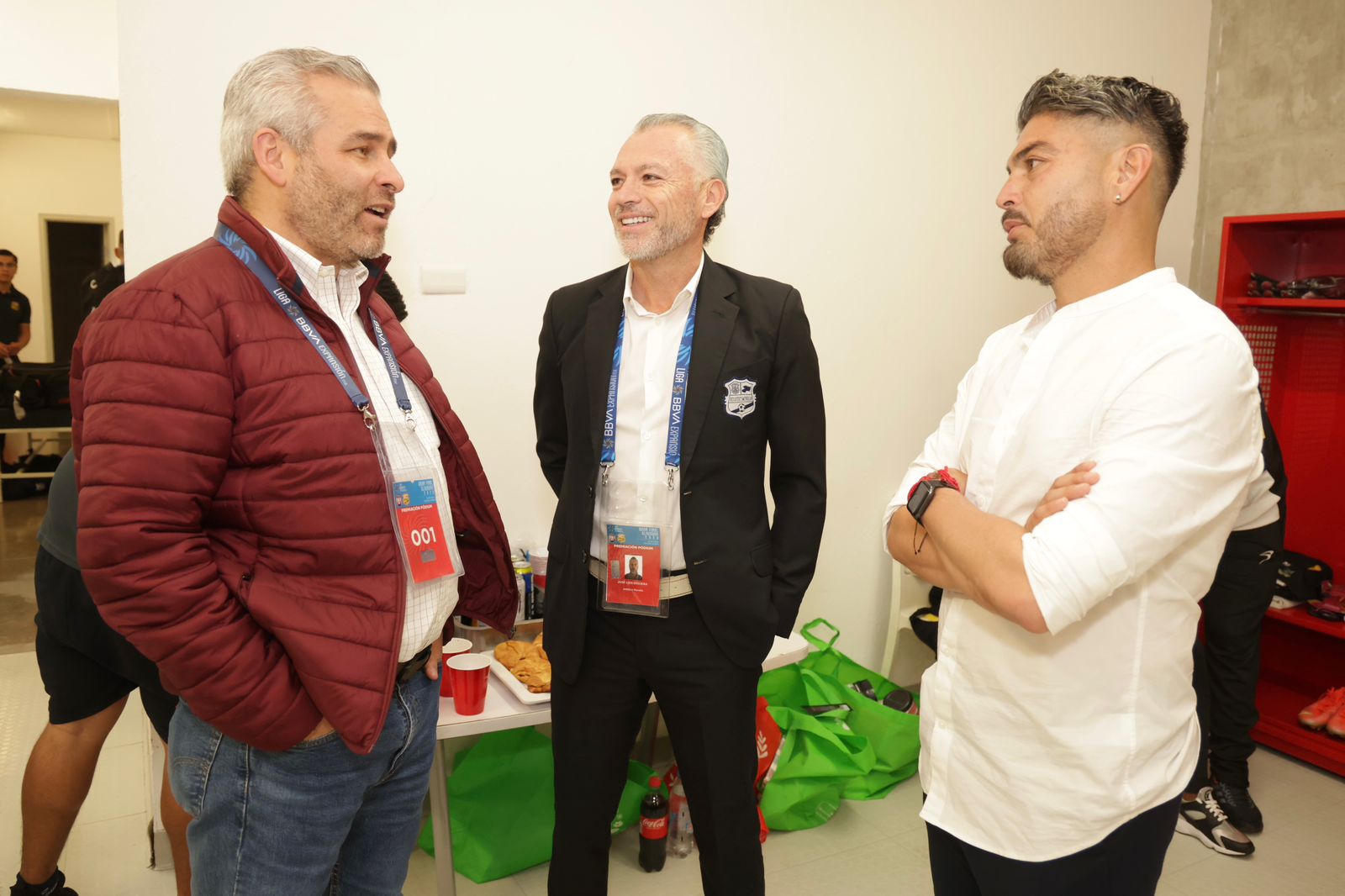 Guadalajara, Jalisco.- Momentos antes de salir a la cancha el gobernador de Michoacán, Alfredo Ramírez Bedolla, alentó al plantel del Atlético Morelia, en el partido de vuelta donde se disputará la Copa en la Liga de Expansión MX.