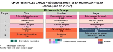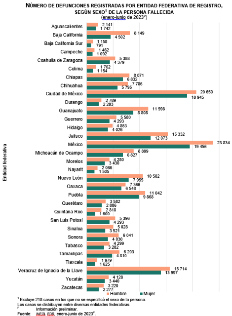 El Instituto Nacional de Estadística y Geografía (INEGI) da a conocer las cifras preliminares de las Estadísticas de Defunciones Registradas (EDR) en el país, de enero a junio de 2023. Los datos provienen de los registros administrativos que se generaron a partir de los certificados de defunción del Registro Civil y los Servicios Médicos Forenses. Las actas de defunción del Registro Civil y los cuadernos estadísticos que proporcionaron las Agencias del Ministerio Público complementan la información.