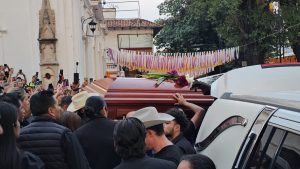 Tras el acto en la Pérgola, el féretro fue trasladado a la Parroquia de San Francisco, acompañado por una caravana de vehículos, motociclistas y ciudadanos que avanzaron lentamente detrás del cortejo. Las campanas repicaban al paso del féretro, y las calles se llenaron de flores, veladoras y aplausos. Afuera del templo, miles de personas aguardaban para participar en la misa de cuerpo presente, que se ofició en medio de un profundo silencio interrumpido solo por los sollozos.