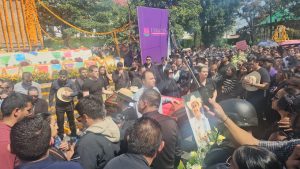 El féretro fue colocado al centro del templete principal, rodeado por guardias de honor y un silencio respetuoso que, de tanto en tanto, se rompía con los gritos de “¡Justicia!” y “¡Carlos vive!”. Sobre el ataúd reposaba un sombrero blanco, el mismo que Manzo solía usar en sus recorridos por las colonias, comunidades y la serranía. A un costado, una gran fotografía mostraba su sonrisa franca, la que lo acompañaba en sus actos públicos y en sus visitas a los barrios más humildes.