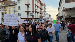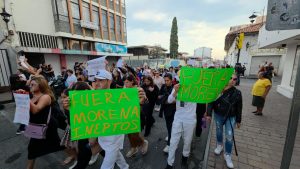Horas más tarde, la indignación se trasladó a las calles. Una marcha recorrió el centro de Uruapan. Cientos de ciudadanos vestidos de negro, muchos con velas encendidas, caminaron desde la Pérgola hasta el Palacio Municipal. Las pancartas hablaban por ellos: “Fuera el gobierno corrupto y asesino”, “México tiene familias destrozadas por la violencia”, “Carlos vive en su pueblo”.
