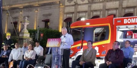 Es la primera vez en Michoacán que se hace entrega de equipamiento nuevo a los bomberos y protección civil.
