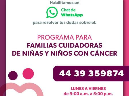 La Secretaría del Bienestar (Sedebi) facilita el registro al programa para Familias Cuidadoras de Niñas y Niños con Cáncer y pone a disposición un número de WhatsApp para obtener respuestas inmediatas a las preguntas más comunes sobre el proceso de inscripción.