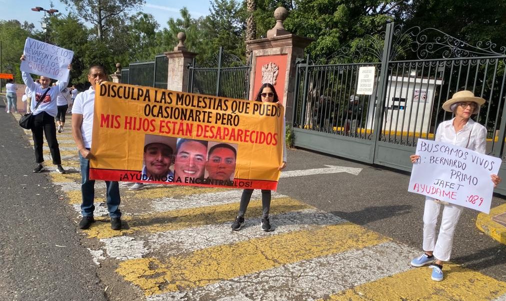 Familiares y amigos de los tres jóvenes de Peribán desaparecidos en Jiquilpan hace dos semanas, se manifestaron en Casa Michoacán para pedir audiencia con el gobernador Alfredo Ramírez Bedolla.