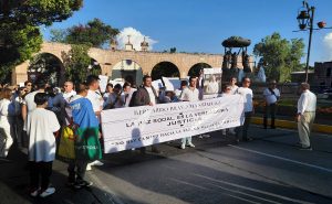 Familiares, amigos y ciudadanos se sumaron a la marcha silenciosa que partió de la Fuente de Las Tarascas hacía Catedral para exigir justicia y clamar paz para Bernardo Bravo Manríquez, líder limonero de Apatzingán asesinado el pasado domingo.