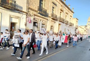 La marcha concluyó con la misa y la ahora viuda así como hermanos y amigos de Bravo Manríquez se retiraron del Centro Histórico de la capital michoacana.