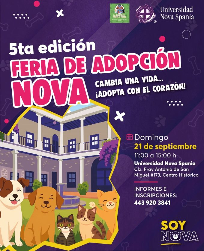 También el domingo, la Casita de Frijol y Tadeo, especializada en rescate felino, realizará su quinta edición de feria de adopción en la Universidad Nova Spania, en Calzada Fray Antonio de San Miguel 173, Centro Histórico, de 11:00 a 15:00 horas, pero tendrá tanto michis y lomitos.