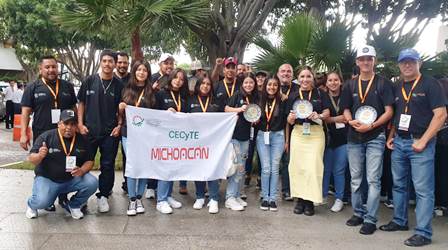 Puebla, Pue.- Estudiantes del Colegio de Estudios Científicos y Tecnológicos del Estado de Michoacán (Cecytem) ganaron segundo y tercer lugar en el XXII Concurso Nacional de Creatividad e Innovación Tecnológica 2023, celebrado en Puebla, Puebla.