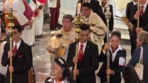 «Gracias Señor por tu sangre que nos salva, Gracias Señor por tu sangre que nos salva», resaltó la entrega amorosa y el sacrificio de Jesús que toma nuestro lugar en la Cruz para salvarnos del pecado y crear una nueva Alianza eterna con nosotros a través de su preciosa sangre derramada: «ojalá que en esta celebración de Jueves Santo todos valoremos y demos gracias a Cristo por su herencia de la Eucaristía y del sacerdocio, y todos decidamos hacer realidad el mandamiento de Cristo del servicio y del amor a los hermanos en nuestro mundo lleno de envidias, lleno de críticas y de descalificaciones, en nuestro mundo donde todos nos quejamos del otro pero no nos damos cuenta de nuestro propio pecado y defecto», dijo ante todos los presentes.