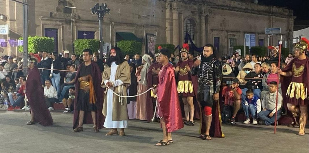 En Maravatío se desarrolló la representación de la Última Cena y prendimiento de Jesús, mostrando estos pasajes bíblicos a familias del municipio y a los turistas y visitantes que se encuentran esta Semana Mayor en Michoacán.