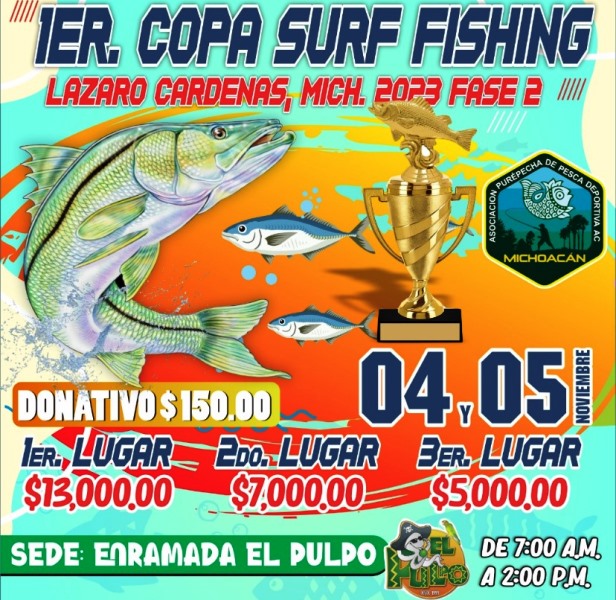 La Comisión de Pesca del Estado de Michoacán (Compesca), encabezada por Ramón Hernández Orozco, invita los días 4 y 5 de noviembre al torneo de pesca deportiva Copa Surf Fishing en playa Jardín, en Lázaro Cárdenas.