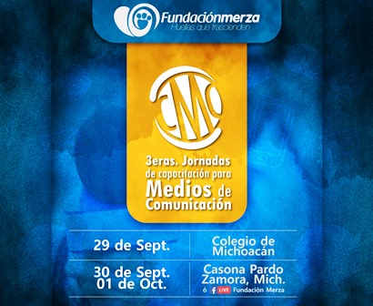 Con la finalidad de coadyuvar en la profesionalización y sumar a la labor de quienes ejercen el periodismo, brindando nuevas herramientas y oportunidades para un óptimo desempeño, Fundación Merza y la Coordinación General de Comunicación Social del Gobierno de Michoacán, invitan a las terceras Jornadas de Capacitación a Medios de Comunicación, del 29 de septiembre al 1 de enero en Zamora, Michoacán.