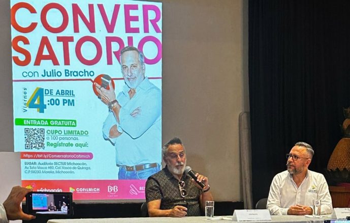 Por su parte Julio Bracho recordó el cariño que le tiene a Michoacán, pues ha podido estar en la entidad durante la filmación de la novela, “Pueblo chico, infierno grande”, protagonizada por Verónica Castro en 1997, “en esa novela tuve la fortuna de conocer Michoacán, es de los estados más ricos, por ello además del conversatorio en la Sectur, también tendré un taller de actuación el mismo día, pero en otra sede que pueden consultar en mis redes sociales”, informó el actor.