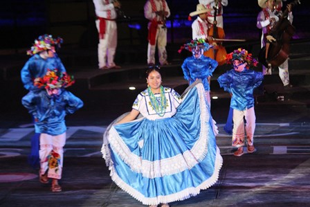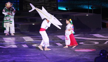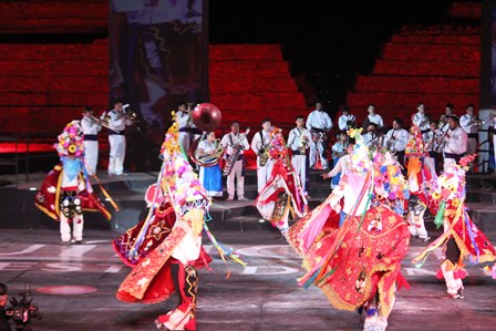 El fuego hizo presencia a través de una muestra del juego de pelota Purépecha, para dar paso a la danza del Torito de Carnaval de la comunidad de Jaracuaro, los viejos elegantes de Santa Fe de La Laguna, danzantes de Sicuicho, la danza de Los Moros, una representación de las danzas de Tierra Caliente, semilleros de Pirekua, la danza del Paloteo, los viejitos de Jaracuaro, Kurpites, Tlahualiles.