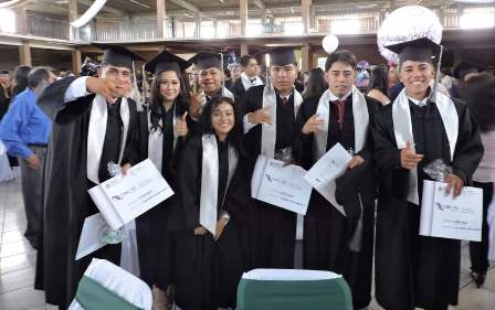 Los alumnos egresados recibieron una cédula y un título profesional que los acredita como técnicos especializados en una de las 19 carreras, así como los que estudiaron con bachillerato general, reciben su documento oficial con capacitación para el trabajo en el área de Informática.