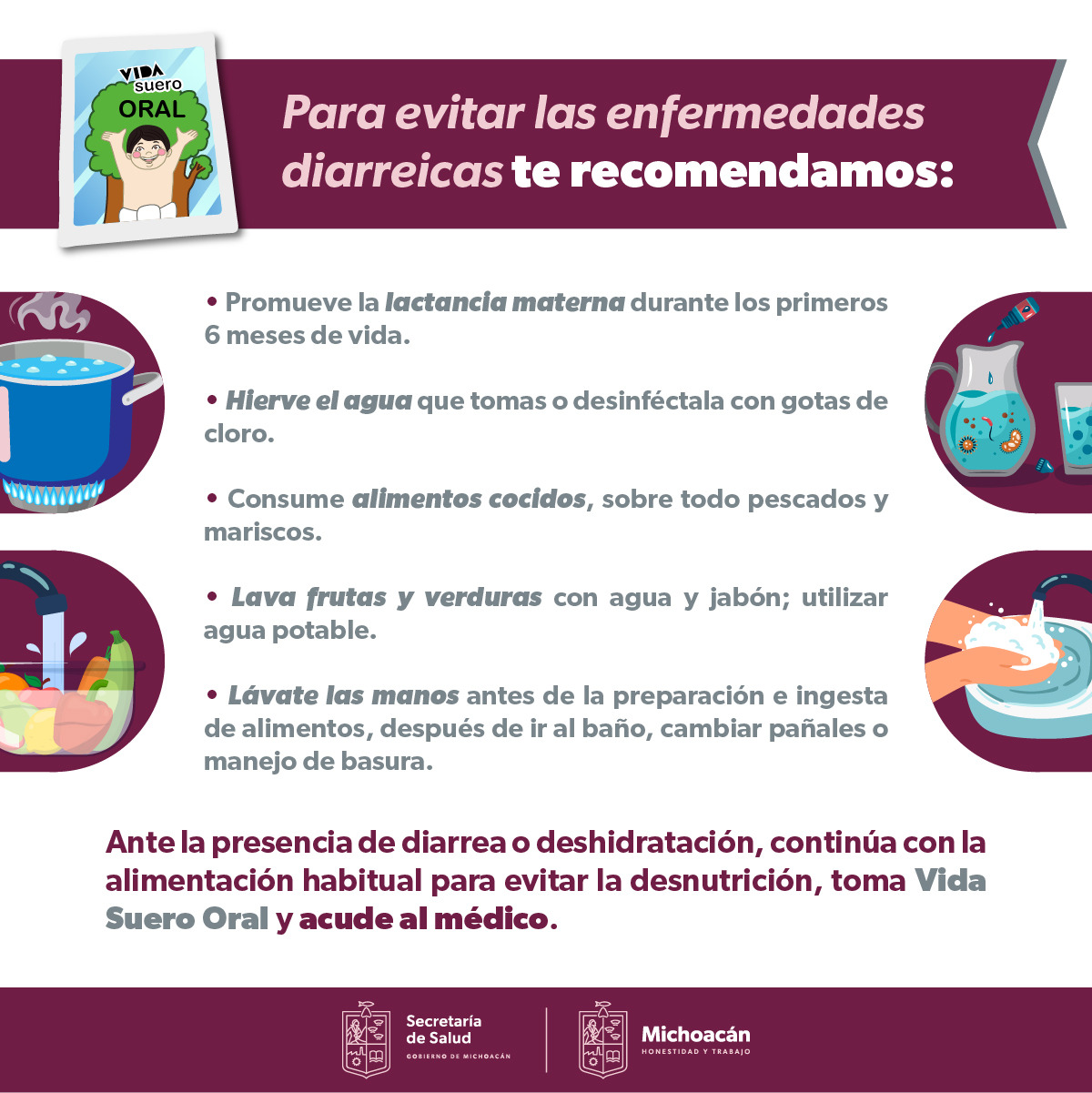 En caso de presentar más de tres evacuaciones en menos de 24 horas, blandas, semilíquidas o líquidas, sensación de seguir evacuando, dolor abdominal o cólico, movimientos en los intestinos, náusea, vómito, poco apetito, fiebre, malestar general y debilidad, la SSM aconseja acudir de manera inmediata a su centro de salud o hospital más cercano para ser atendido por un especialista, principalmente en grupos vulnerables niños menores de cinco años o adultos mayores que son más susceptibles a deshidratarse.