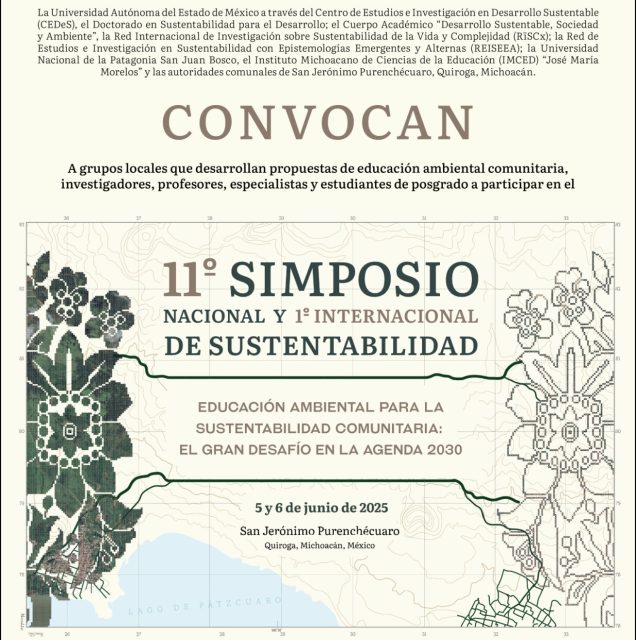 La Secretaría del Medio Ambiente (Secma) invita a grupos locales que desarrollan propuestas de educación ambiental comunitaria, investigadores, profesores, especialistas y estudiantes de posgrado a participar en el 11° Simposio Nacional y 1° Internacional de Sustentabilidad.