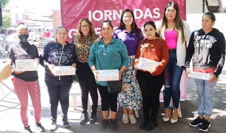 Panindícuaro, Mich.- La Secretaría de Igualdad Sustantiva y Desarrollo de las Mujeres Michoacanas (Seimujer), llevó a cabo la Jornada Ginecólogica en este municipio donde se entregaron kits menstruales a mujeres e información sobre sus derechos, y se colocaron módulos de servicios de salud, empoderamiento económico y capacitación.
