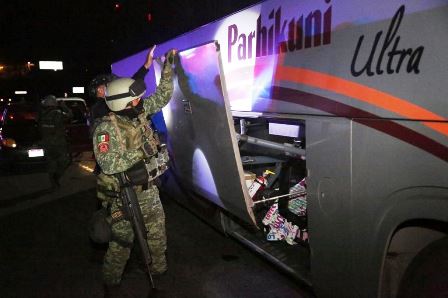 Las tareas para la disuasión del delito que mantienen los agentes de la Guardia Civil en coordinación con las fuerzas estatales y federales, se llevan a cabo a través de los módulos de inspección itinerantes para localizar vehículos con reporte de robo, armas de fuego o personas que cuenten con mandatos judiciales vigentes.