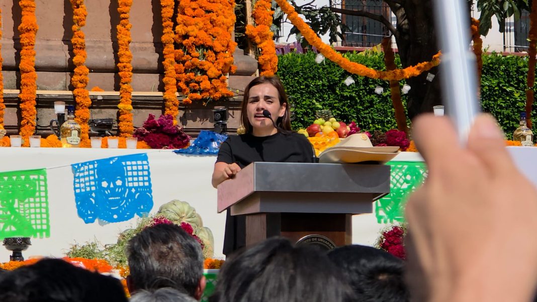 Bajo las consignas de ¡No estás sola!, señaló que Carlos Manzo vivió por su gente, incluso se perdió cosas con sus hijos, porque veía que sus acciones ayudaban a su gente y a su pueblo, por lo que su legado de seguirá al apoyar a Uruapan, al sector vulnerable y a los que lo necesiten.