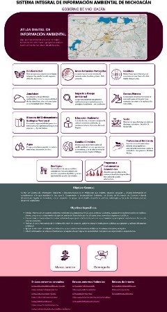 En breve, Michoacán contará con un Sistema Integral de Información Ambiental que permitirá conocer de manera digital la situación que guarda el territorio estatal en esta materia, así como acceder a estadísticas, bases de datos, publicaciones, mapas, fotografías, videos, e infografías, entre otras cosas, informó la Secretaría de Medio Ambiente (Secma).