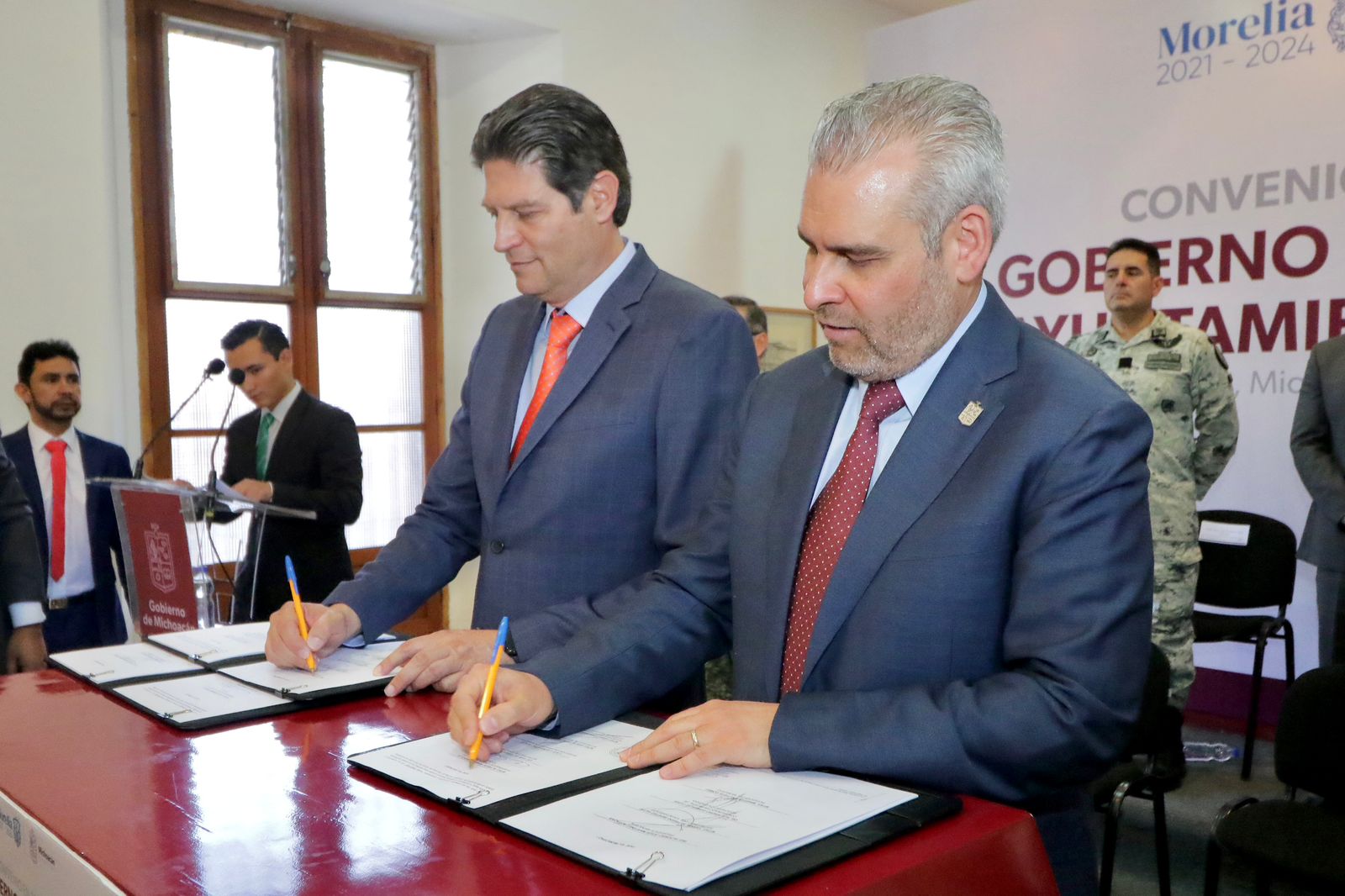 El gobernador Alfredo Ramírez Bedolla detalló que, de esa cantidad, el estado aportará 81 millones 835 mil 558 pesos y el municipio 31 millones 805 mil pesos para incrementar la fuerza de seguridad municipal y otros necesarios para disminuir indicadores delictivos en la demarcación.