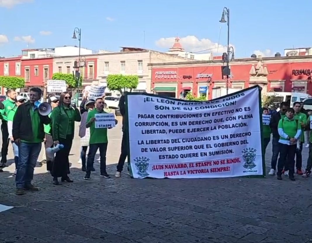 El grupo de unos 50 sindicalizados protestaron en el evento del 53 aniversario de la Casa de las Artesanías al que acudiría el gobernador Alfredo Ramírez Bedolla.