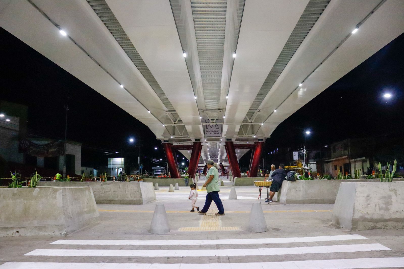 Morelia, Michoacán.- La iluminación en espacios públicos y vialidades es una medida indispensable de seguridad, por ello, el puente superior vehicular Paso Catrinas y su bajopuente cuentan con 154 luminarias que contribuyen a prevenir accidentes e incidentes delictivos durante el tránsito nocturno en la carretera Morelia-Quiroga, frente al fraccionamiento Villas del Pedregal.
