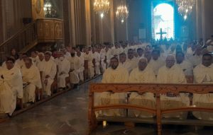 Desde el altar oró el jefe pastoral también por los sacerdotes fallecidos, por los misioneros, por los seminaristas y los jóvenes que el Señor sigue llamando, y por todos los obispos, el Cardenal y los sacerdotes: «pidámosle a Dios que nos unja con su Espíritu para que desde Él seamos la alternativa para vivir la paz y la justicia, y la solidaridad, llevando con alegría la palabra de Dios».