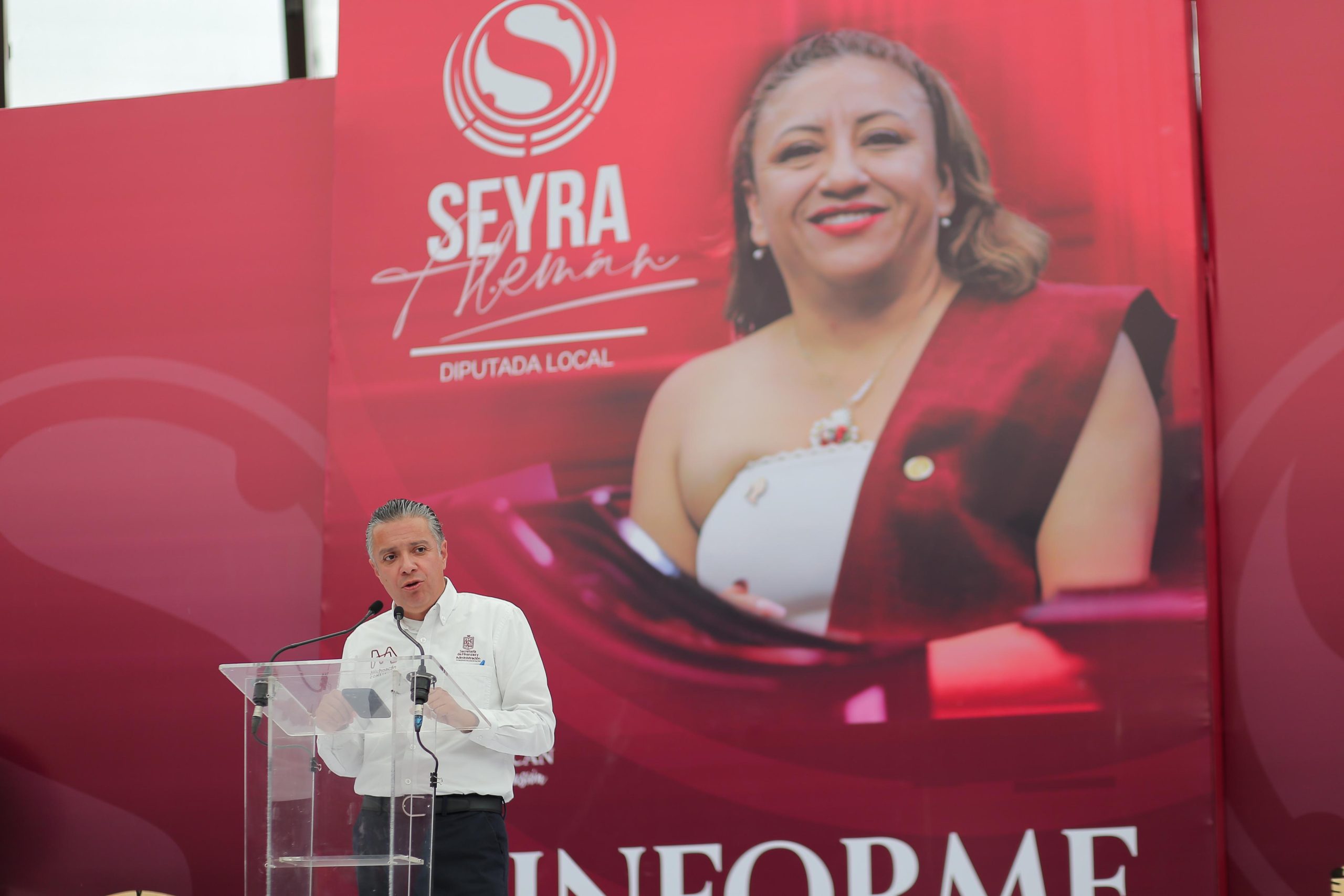Ante miles de asistentes al Segundo Informe Legislativo de la diputada Seyra Anahí Alemán Sierra, el responsable del manejo de los recursos públicos en el estado de Michoacán, reconoció la labor que ha desarrollado la legisladora, junto con sus compañeros, en el impulso de iniciativas de ley e incluso en la revisión y aprobación tanto del Presupuesto de Ingresos y Egresos 2022 como del paquete correspondiente a 2023, hecho que ha permitido que el Poder Ejecutivo desempeñe sus tareas con un impulso real a las obras de infraestructura, programas y las acciones que se orientan a fortalecer el bienestar social.