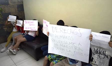 Un grupo de madres y padres de familia, así como alumnas y alumnos de la escuela primaria Benito Juárez, de la capital michoacana, asistieron a las instalaciones de la Comisión Estatal de los Derechos Humanos en Michoacán a presentar una ampliación de queja en contra de la directora del centro educativo al que asisten sus hijos.