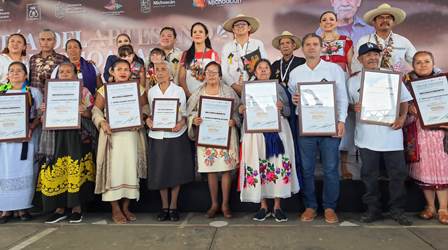 En el marco del Día del Artesano Michoacano, se reconoció la trayectoria de 63 artesanos, los cuales, señaló Castor Estrada Robles, director del Instituto del Artesano, fueron elegidos por integrantes de sus comunidades, los cuales tendrán que transmitir y seguir con la tradición artesanal viva de sus comunidades hacia las nuevas generaciones.
