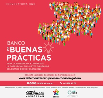 El Sistema Estatal Anticorrupción busca reconocer las Buenas Prácticas de las autoridades, órganos y organismos de los poderes Ejecutivo, Legislativo y Judicial, así como de partidos políticos y Asociaciones Civiles de Michoacán en materia anticorrupción, para ello emitió la Convocatoria para identificar y construir un Banco de Buenas Prácticas para la Prevención y Combate a la Corrupción.