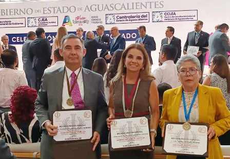 Magistrada María de los Ángeles Llanderal Zaragoza, por su excelente desempeño en La Judicatura; Doctor Sergio Carmelo Domínguez Mota, por su destacada Trayectoria Académica; abogada Laura Aguirre Medina, por su brillante Ejercicio Profesional en la Abogacia, y Notario Público Perseo Alejandro Ibáñez Martínez, por su acertada labor como Fedatario Público.