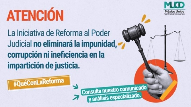 Según la organización civil nacional, México Unido Contra la Delincuencia (MUCD), la propuesta de reforma al Poder Judicial en México, en lugar de resolver problemas, «complejiza, compromete, entorpece y obstaculiza la impartición de justicia, dejando intactas las causas estructurales de la impunidad».