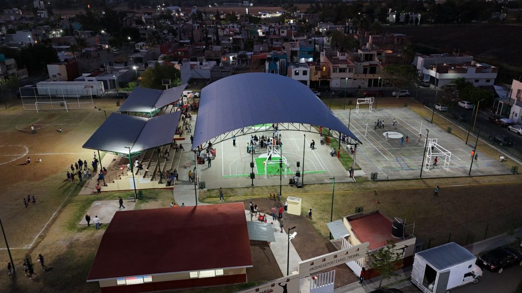 Con una inversión superior a 1 millón 300 mil pesos, se llevaron a cabo importantes trabajos de rehabilitación, entre los que destacan el mejoramiento integral de la cancha de baloncesto, colocación de mallas detrás de las porterías en la cancha de fútbol, rehabilitación de baños, adecuación del salón de usos múltiples, accesos y rampas funcionales, cancha de voleibol, mejora del área infantil, así como la instalación de iluminación LED en todos los espacios de la unidad deportiva.