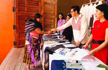 También la artesana Carmen Joaquín Ascencio, con un guanengo negro de Cocucho; Norma Elena Vargas Ramírez, con una blusa manga tres cuartos punto fino de San Felipe de los Herreros; Daniela Valdez Arévalo, con una blusa de relindo de San Felipe de los Herreros; y Rosa Liliana Pascual Bautista, con un rebozo tradicional de Ahuiran.